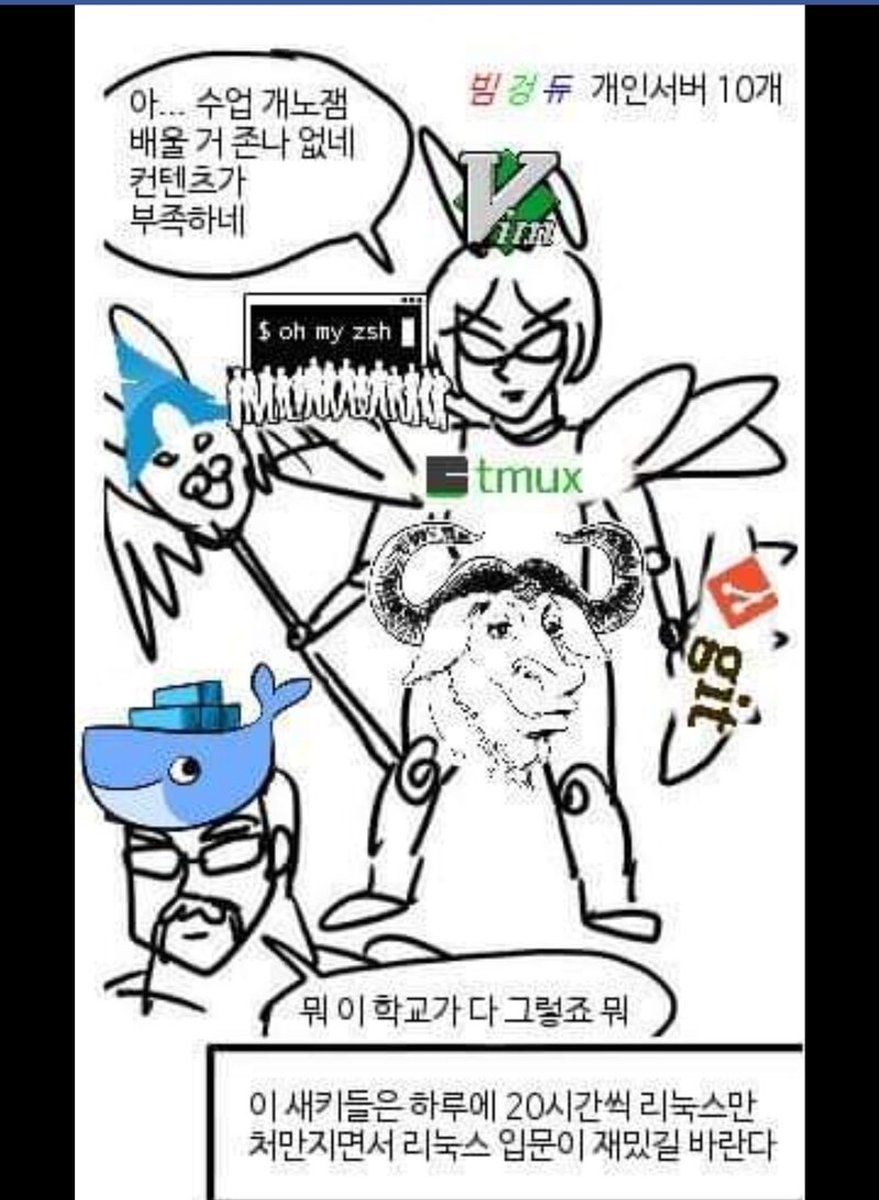 Linux Geek들이 상대적으로 많은 코호트[^1]에서는 Vim, Emacs를 포함한 커맨드라인 도구 사용법을 오프라인에서 도제식으로 전승하는 경우가 잦습니다. 그렇지 않은 코호트에서는 도움을 구하고 싶어도 물어볼 사람이 없어서 마땅히 구하기는 어렵구요. 저도 역시 물어볼 사람이 없어서 답답했던 처지였던 적이 많았습니다.